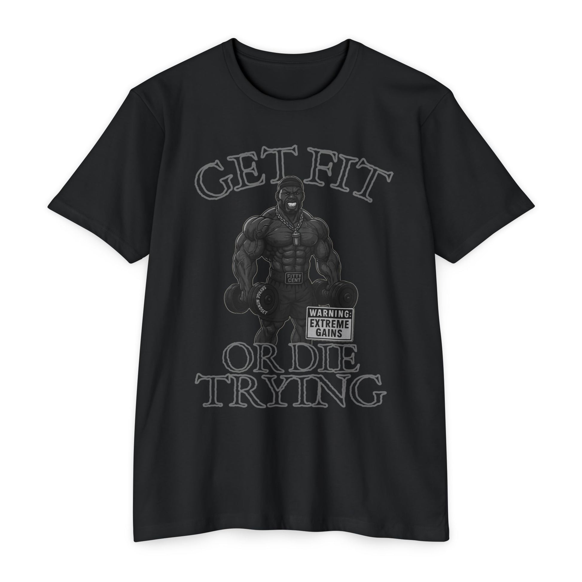 For the man who lives in the gym and refuses to quit. The Get Fit or Die Trying tee is a clever nod to a legendary hip-hop era, reworked for lifters who chase gains instead of fame. It’s humor with attitude, built for guys who treat every workout like a mission and live the savage mindset.