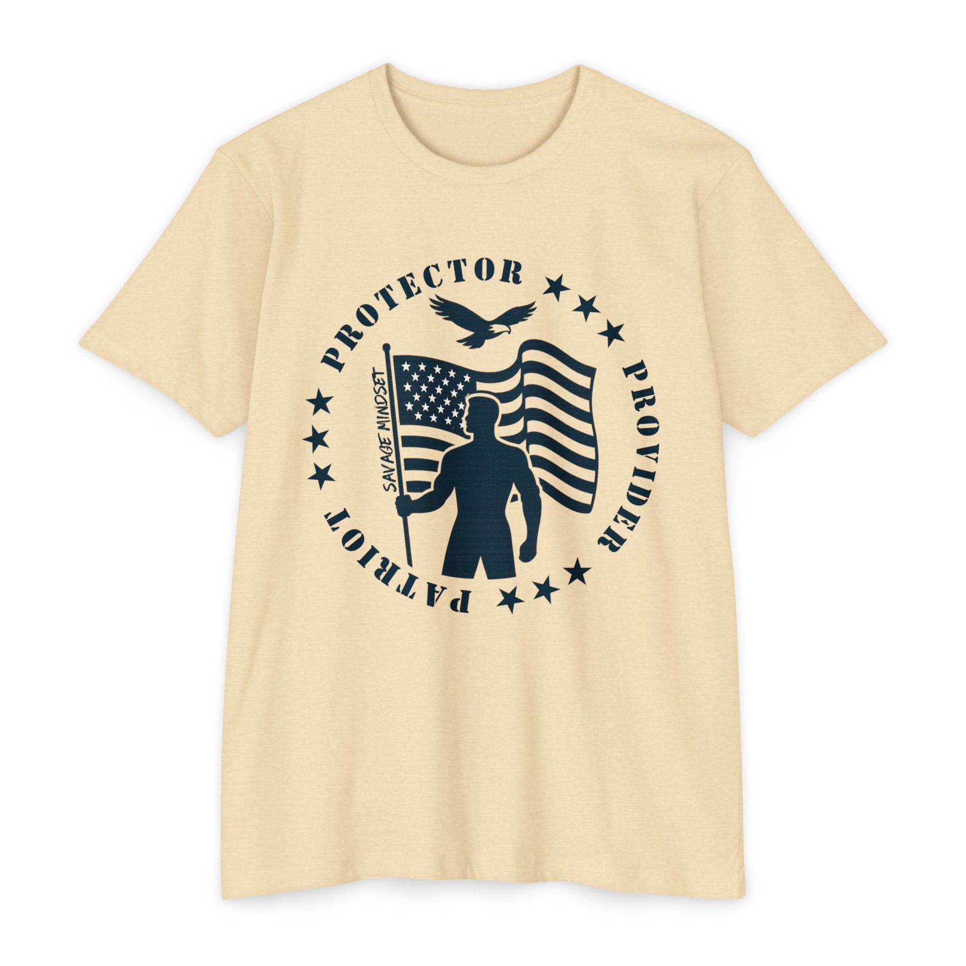 This design represents the backbone of the American spirit — the men who stand firm, take responsibility, and lead from the front. Featuring a powerful silhouette holding the American flag, encircled by the words Protector • Provider • Patriot, this tee embodies duty, grit, and unwavering loyalty to faith, family, and country.